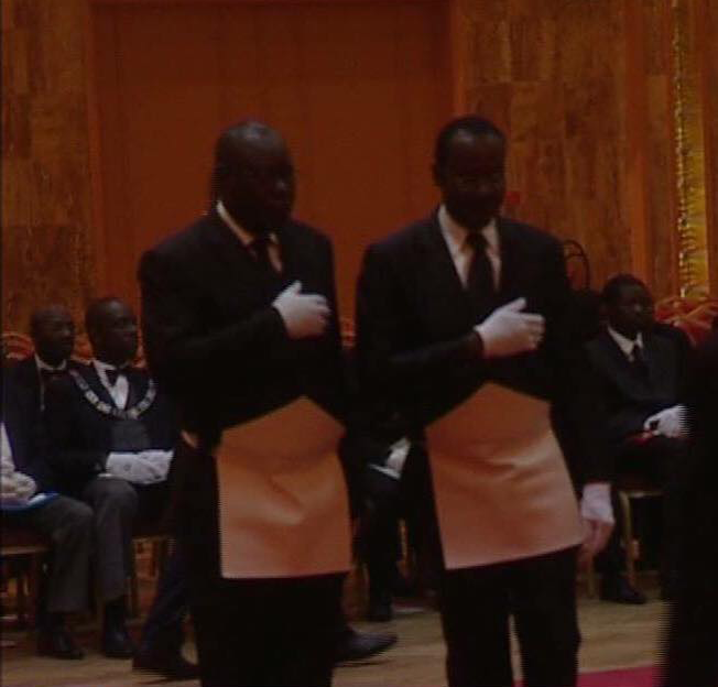 Le concubin de la victime (à droite), lors d’une cérémonie maçonnique[/caption]